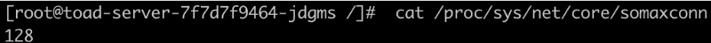 查看pod somaxconn 发现是默认的128,意味着只能有128个建立连接,后续进来的连接都得排队。自此问题找到:默认的somaxconn不够用。